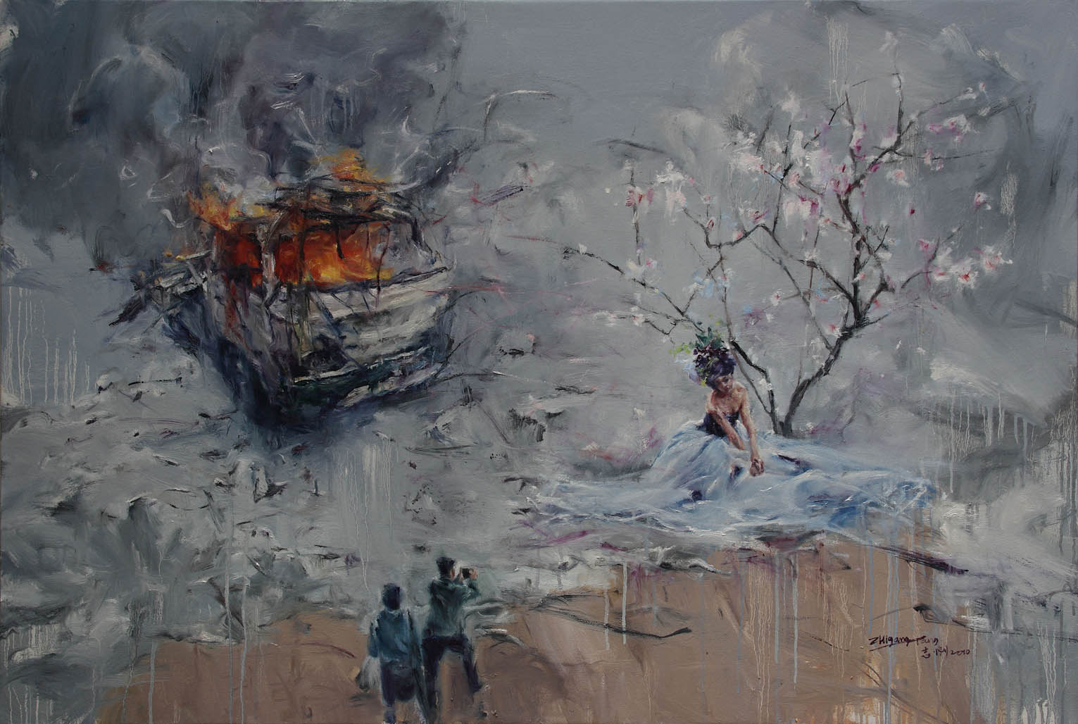 Facing Dong Xiaozhuang´s Painting. It is not difficult to sense tension, note and consonance. Deep and illusion are no longer confronted. Minimalist and complex means got unified. The difference of logic between expressionsim and fantastic realism is a formidable obstacle, but they are perfect digested in Dong xiaohuang´s painting, from the picture to the spirit, the communication is undoubtedly direct.