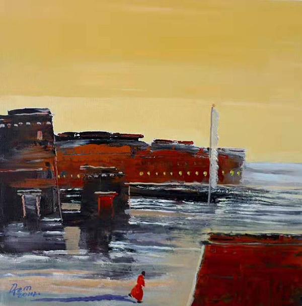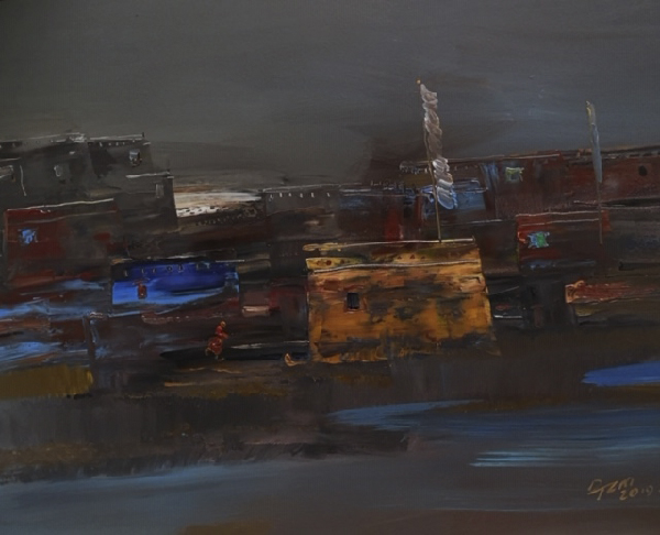 Die Gemälde von Datang Zhuoma sind abstrakt und impressionistisch, aber nicht nur das. Fragmente von Emotionen werden durch kontraststarke Farbblöcke und Striche dargestellt. Damit wird damit eine seelische Kraft vermittelt. Ein einzigartiger Frieden und eine spirituelle Atmosphäre des Schneelandes verbreitet sich in ihren Werken. Mit einer östlichen Hand greift sie zum westlichen Pinsel und malt ein Bild des Herzens von Chinesen. Die Ölfarben in ihrer Hand besitzen eine Zauberkraft – was für ein Glück für die Farben! – und damit zeigt sie den Betrachtern die einzigartigen Landschaften von Tibet.