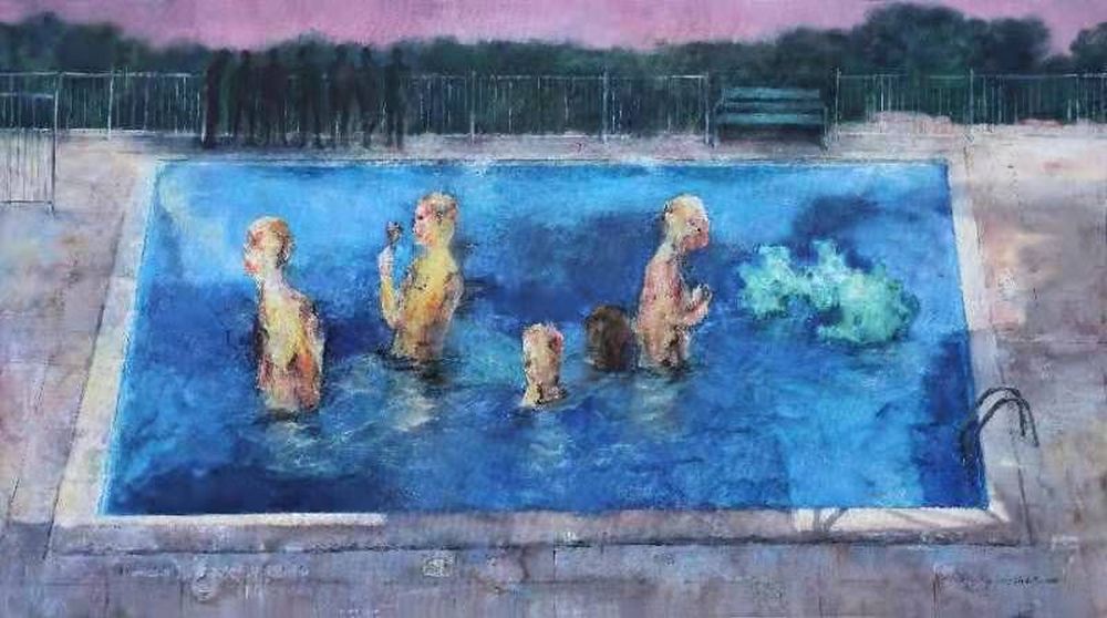 Die Welt der Pools, 2020, Aquarell auf Papier, 81 x 146 cm, Preis auf Anfrage