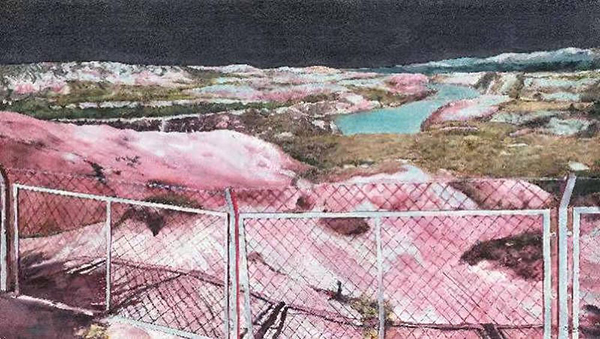 Die rote Landschaft in der Erinnerung Nr. 01, 2020, Aquarell auf Papier, 107 x 191 cm, Preis auf Anfrage