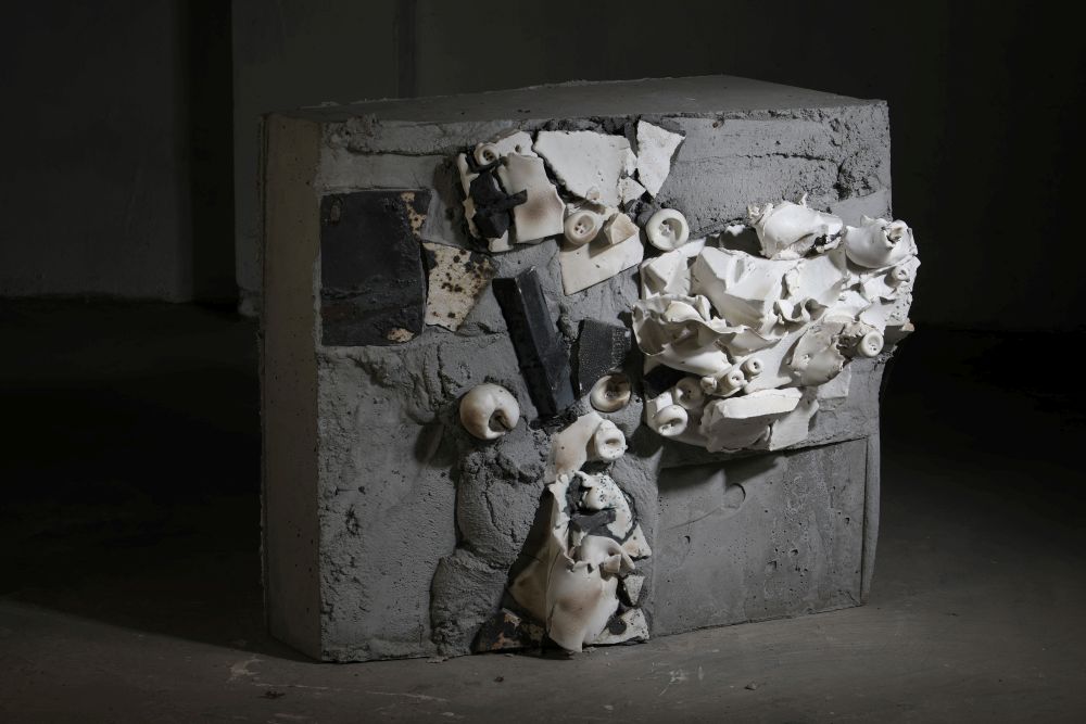 Skulptur, „Wiedergeburt NT No. 138“, 2017/2019, Keramik/Stahl/Zement/Silizium,