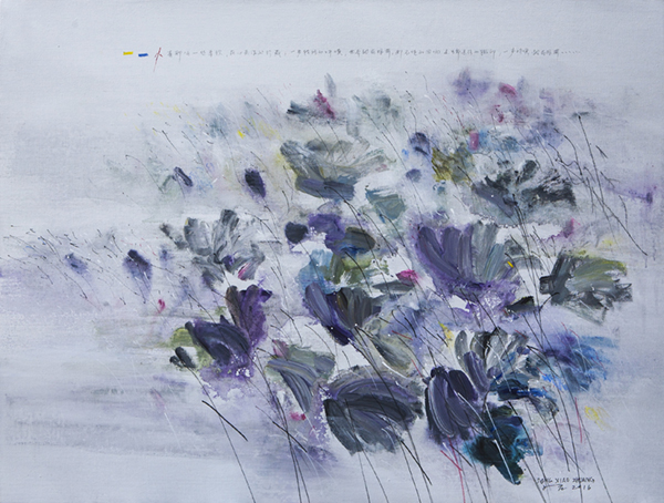 Those hazy, mysterious and dreamily colorful expressions with obvious modality are the extension of Dong Xiaozhuang´s dreams and thought, looking familiar, but inexplicable. „Lotus“ is the symbol of Dong Xiaozhuang, which is also reconstructed in his painting are became more mysterious and wild as the ultimate symbol of life and loneliness.